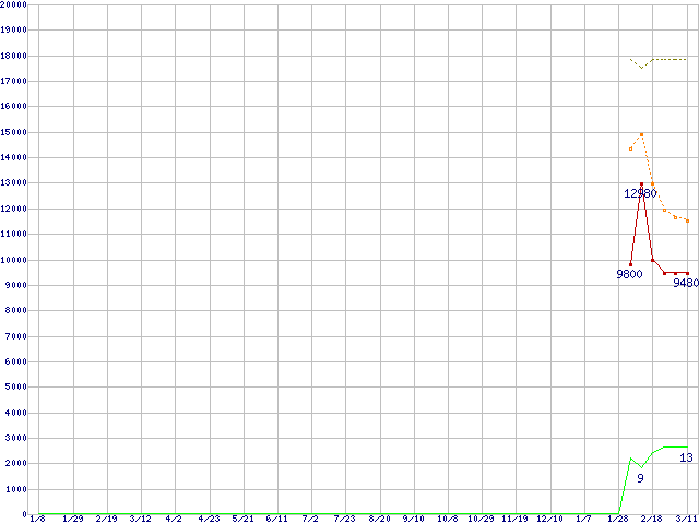 | 2.5インチ ミドルクラスSSD 32GB (32GB,MLC)の価格推移 |
