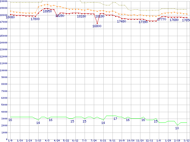 | Core 2 Duo E8500 (3.16GHz,L2 6MB)の価格推移 |