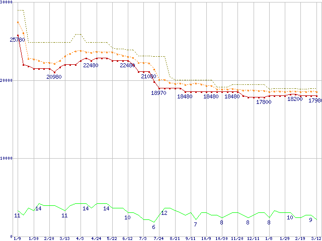 | Core 2 Quad Q9400 (2.66GHz,L2 3MB×2)の価格推移 |