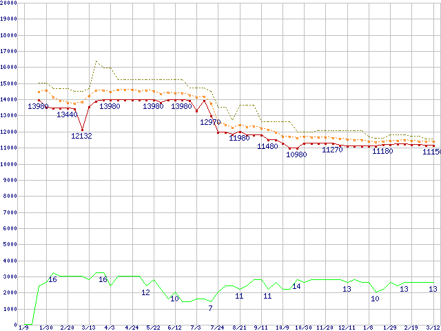 | Core 2 Duo E7500 (2.93GHz,L2 3MB)の価格推移 |