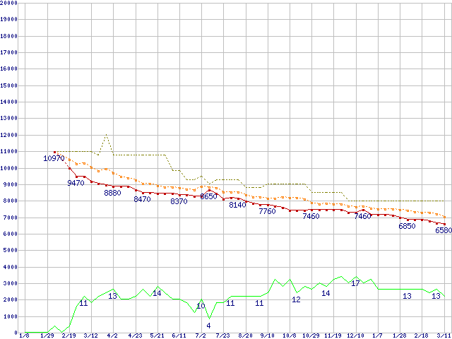 | HTS545050B9A300 (500GB,8MB)の価格推移 |