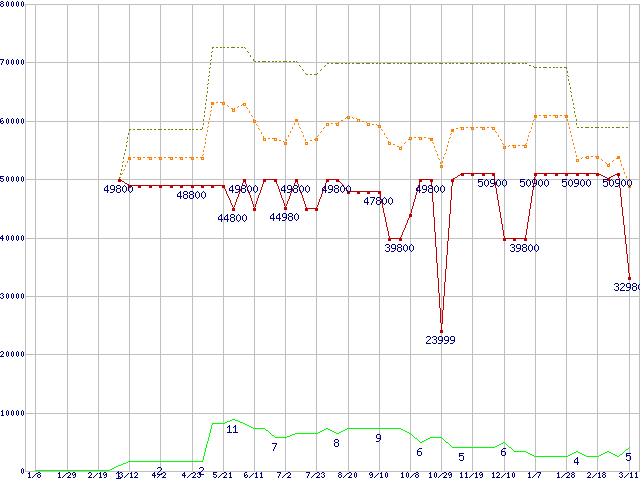| 2.5インチ ローエンドSSD 256GB (256GB,MLC)の価格推移 |