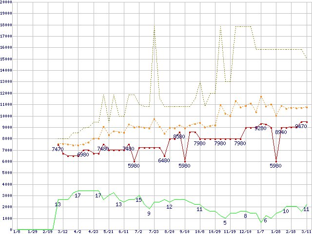 | 2.5インチ ローエンドSSD 32GB (32GB,MLC)の価格推移 |