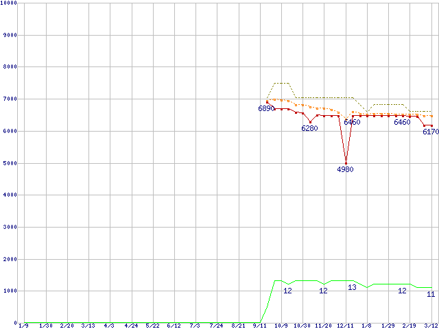 | Athlon II X2 235e (2.7GHz,L2 1MB×2,TDP 45W)の価格推移 |