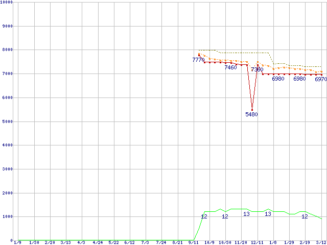 | Athlon II X2 240e (2.8GHz,L2 1MB×2,TDP 45W)の価格推移 |