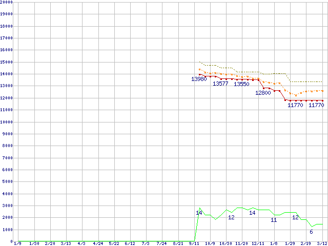 | Athlon II X4 605e (2.3GHz,L2 512KB×4,TDP 45W)の価格推移 |