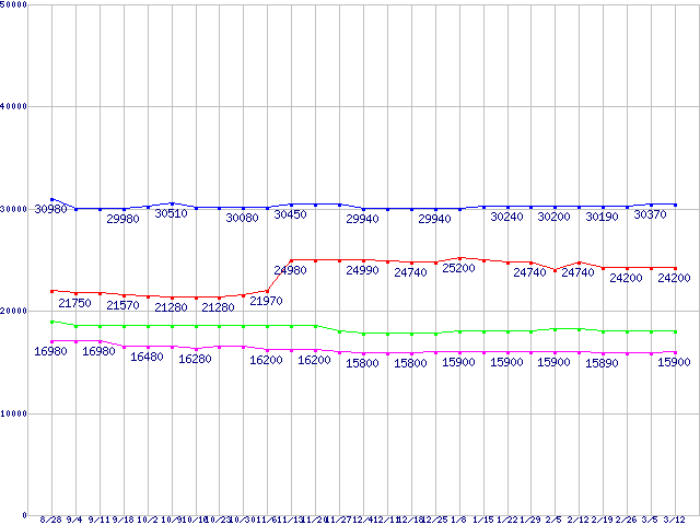 | ※製品名をクリックすると個別のグラフを表示します ※点線部は販売店が確認できなかった、または調査データがないことを示します | |