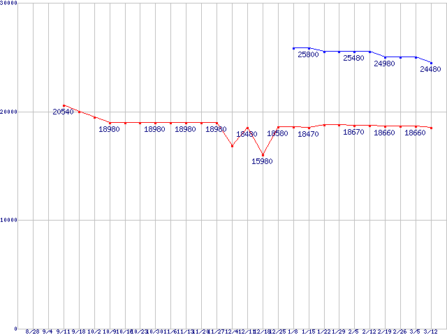 | ※製品名をクリックすると個別のグラフを表示します ※点線部は販売店が確認できなかった、または調査データがないことを示します |