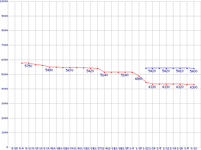 | LGA775 (FSB 800MHz,L2 1MB,Dual Core,TDP 65W)の最安値推移 |