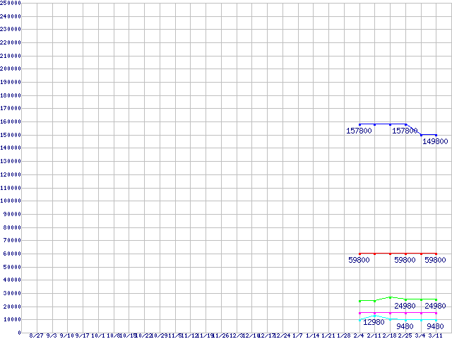 | ※製品名をクリックすると個別のグラフを表示します ※点線部は販売店が確認できなかった、または調査データがないことを示します | |