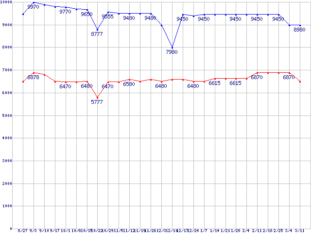 | ※製品名をクリックすると個別のグラフを表示します ※点線部は販売店が確認できなかった、または調査データがないことを示します |