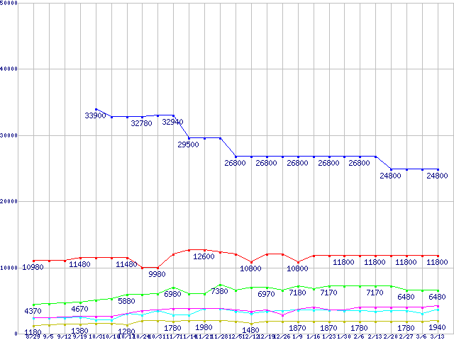 | ※製品名をクリックすると個別のグラフを表示します ※点線部は販売店が確認できなかった、または調査データがないことを示します | |