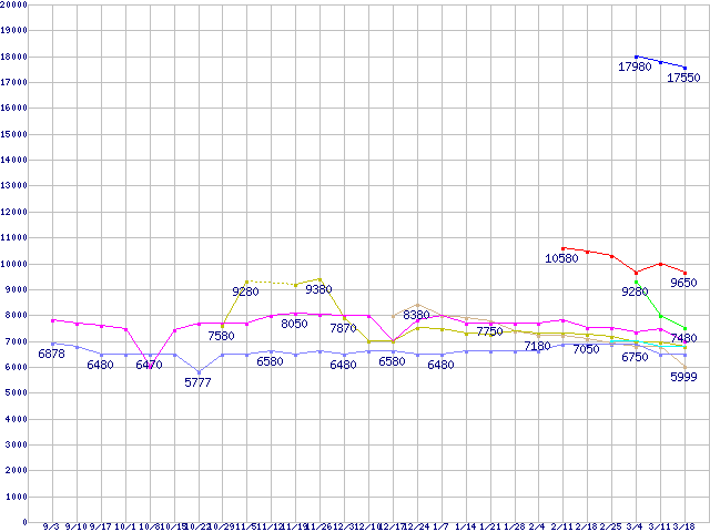 | ※製品名をクリックすると個別のグラフを表示します ※点線部は販売店が確認できなかった、または調査データがないことを示します | |