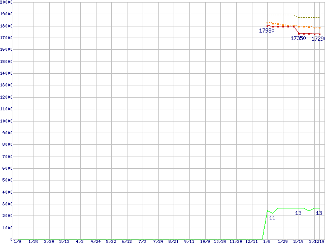 Core i5-650 (3.2GHz)の価格推移↑前グラフ↓次グラフ(2009年1月9日〜2010年3月19日)※このグラフは過去のデータも税率5%相当に調整した税込み相当額のグラフです。 税率変更や、総額表示方式導入(2004年4月)の影響は除いています。●関連グラフCPU主要製品の最安値推移CPU主要製品(最安値1万円〜2万円未満)の最安値推移Intel系CPUの最安値推移LGA1156 (L3キャッシュ4MB,Dual Core,GPU内蔵,Hyper-Threading,TDP 73〜87W)の最安値推移●凡例最安値(点線部は販売店未確認または未調査)平均値最高値ショップ数