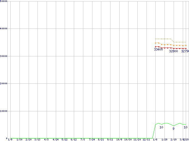 Core i7-860S (2.53GHz)の価格推移↑前グラフ↓次グラフ(2009年1月9日〜2010年3月19日)※このグラフは過去のデータも税率5%相当に調整した税込み相当額のグラフです。 税率変更や、総額表示方式導入(2004年4月)の影響は除いています。●関連グラフCPU主要製品の最安値推移CPU主要製品(最安値3万円〜6万円未満)の最安値推移Intel系CPUの最安値推移LGA1156 (L3キャッシュ8MB,Quad Core,Hyper-Threading,TDP 82〜95W)の最安値推移●凡例最安値(点線部は販売店未確認または未調査)平均値最高値ショップ数