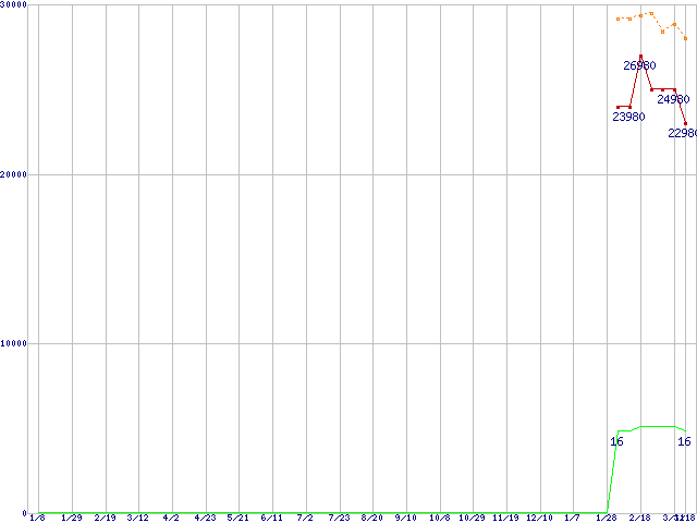 | 2.5インチ ミドルクラスSSD 128GB (128GB,MLC)の価格推移 |