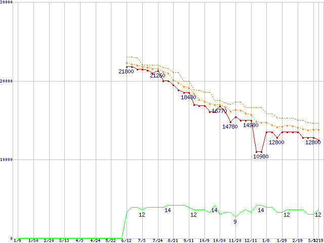 | Phenom II X4 945 (3.0GHz,L2 512KB×4,L3 6MB,TDP 95W)の価格推移 |