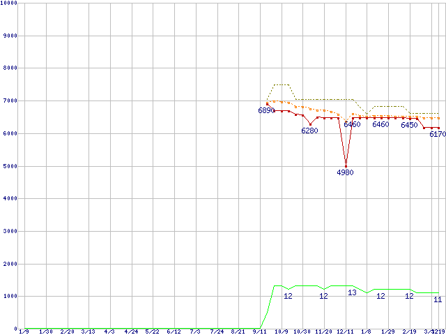 | Athlon II X2 235e (2.7GHz,L2 1MB×2,TDP 45W)の価格推移 |