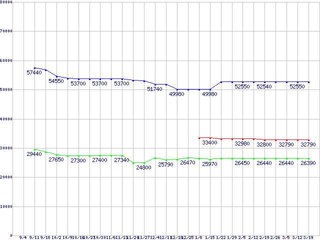 | LGA1156 (L3キャッシュ8MB,Quad Core,Hyper-Threading,TDP 82〜95W)の最安値推移 |