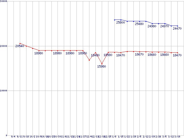 | ※製品名をクリックすると個別のグラフを表示します ※点線部は販売店が確認できなかった、または調査データがないことを示します |