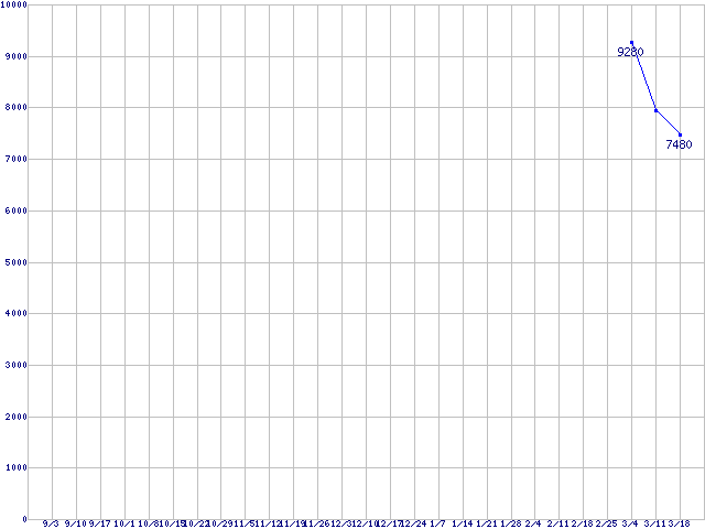 | WD Caviar Blue (7200rpm,3Gb/s)の最安値推移 |