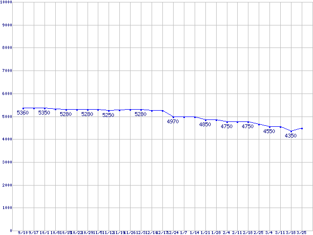 | HDD 300〜400GB未満の最安値推移 |
