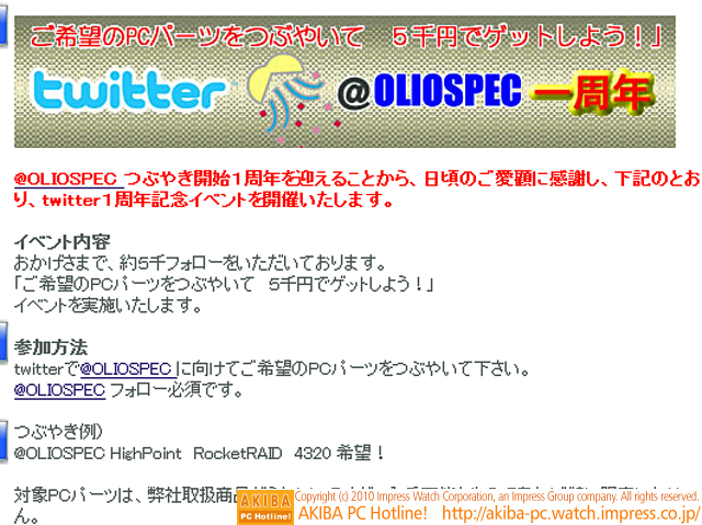 PCショップでTwitterキャンペーン実施中、好きなパーツを5千円で