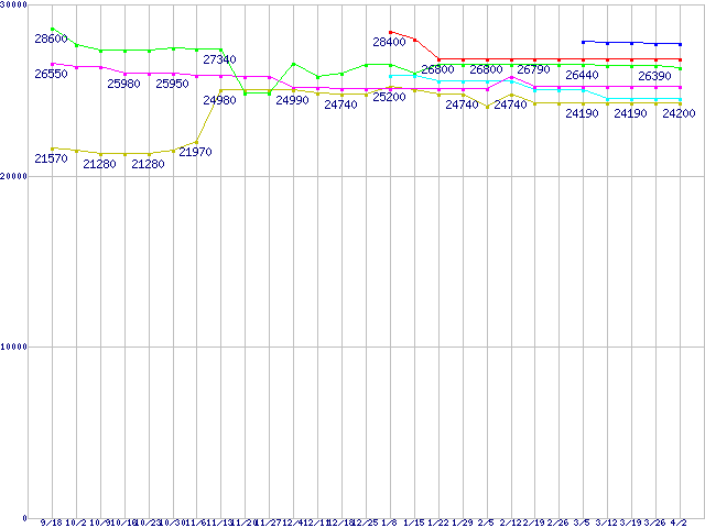 | ※製品名をクリックすると個別のグラフを表示します ※点線部は販売店が確認できなかった、または調査データがないことを示します | |