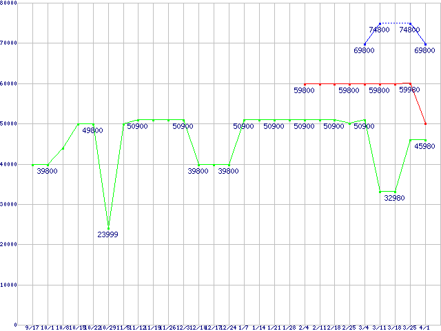 | ※製品名をクリックすると個別のグラフを表示します ※点線部は販売店が確認できなかった、または調査データがないことを示します | |
