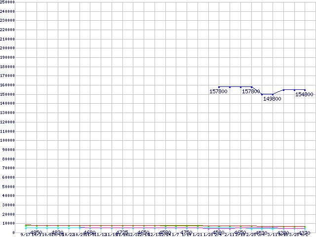 | HDD 500〜600GB未満の最安値推移 |