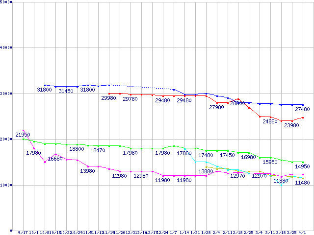 | ※製品名をクリックすると個別のグラフを表示します ※点線部は販売店が確認できなかった、または調査データがないことを示します | |
