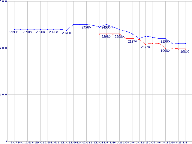 | ※製品名をクリックすると個別のグラフを表示します ※点線部は販売店が確認できなかった、または調査データがないことを示します |