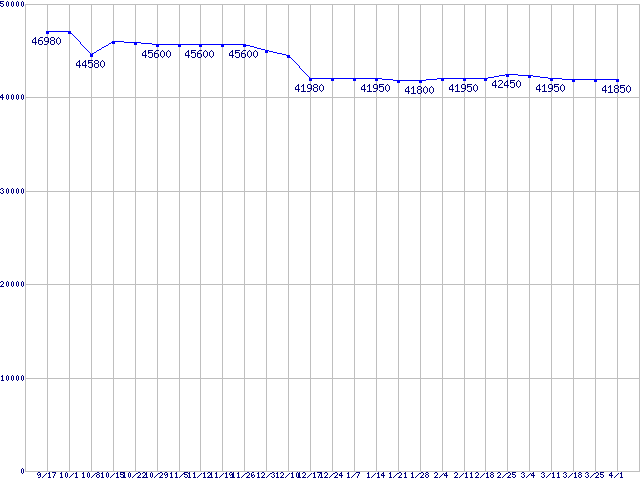 | HDD 160〜200GB未満の最安値推移 |