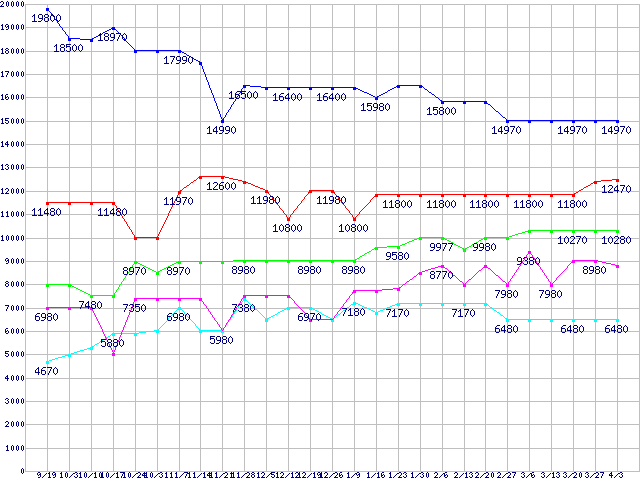 | ※製品名をクリックすると個別のグラフを表示します ※点線部は販売店が確認できなかった、または調査データがないことを示します | |