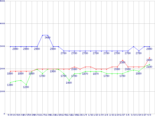 | ※製品名をクリックすると個別のグラフを表示します ※点線部は販売店が確認できなかった、または調査データがないことを示します | |