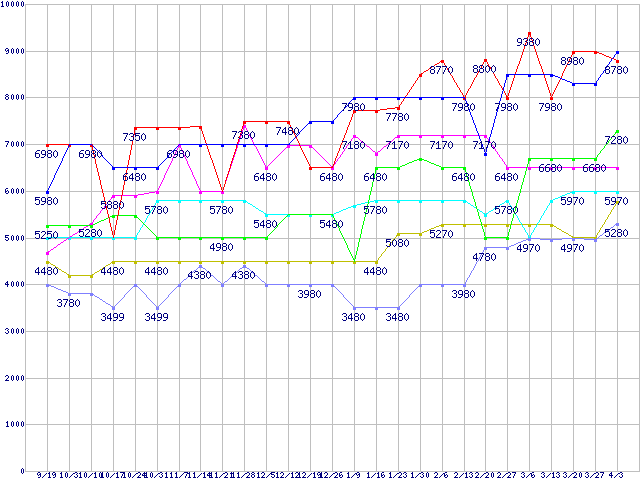 | ※製品名をクリックすると個別のグラフを表示します ※点線部は販売店が確認できなかった、または調査データがないことを示します | |
