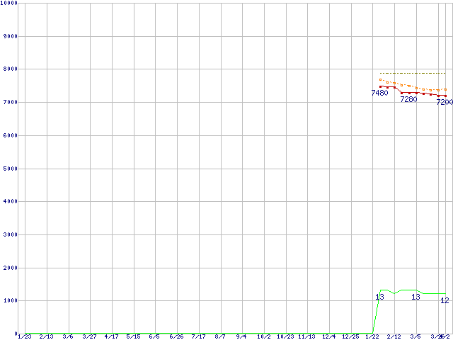 Athlon II X2 255 (3.1GHz,L2 1MB×2,TDP 65W)の価格推移↑前グラフ↓次グラフ(2009年1月23日〜2010年4月2日)※このグラフは過去のデータも税率5%相当に調整した税込み相当額のグラフです。●関連グラフCPU主要製品の最安値推移CPU主要製品(最安値1万円未満)の最安値推移AMD系CPUの最安値推移Socket AM3 (Dual Core)の最安値推移●凡例最安値(点線部は販売店未確認または未調査)平均値最高値ショップ数