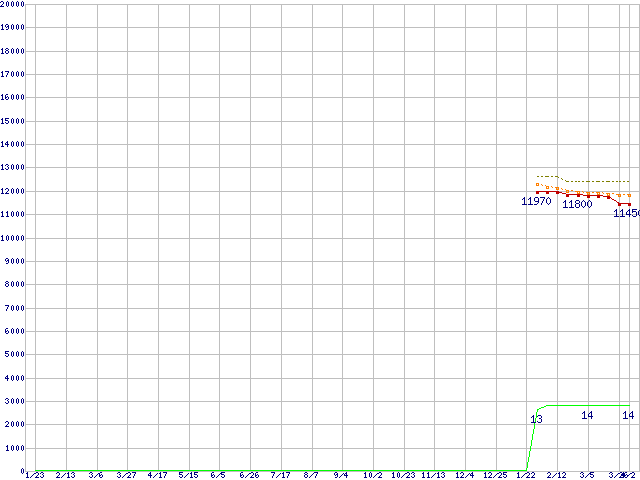Athlon II X4 635 (2.9GHz,L2 512KB×4,TDP 95W)の価格推移↑前グラフ↓次グラフ(2009年1月23日〜2010年4月2日)※このグラフは過去のデータも税率5%相当に調整した税込み相当額のグラフです。●関連グラフCPU主要製品の最安値推移CPU主要製品(最安値1万円〜2万円未満)の最安値推移AMD系CPUの最安値推移Socket AM3 (Quad Core)の最安値推移●凡例最安値(点線部は販売店未確認または未調査)平均値最高値ショップ数