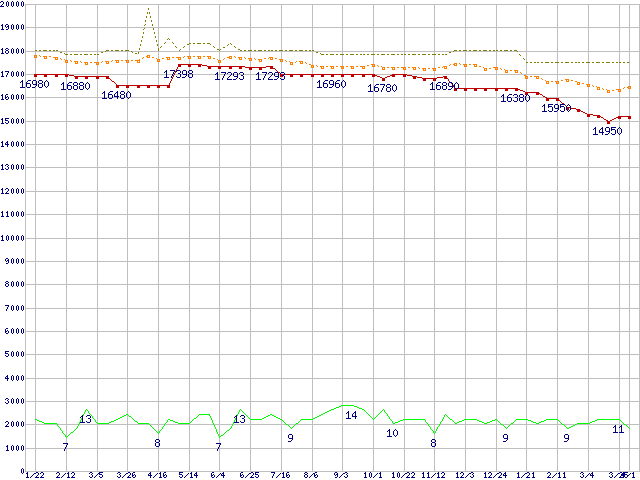 WD1500HLFS (150.0GB)の価格推移↑前グラフ↓次グラフ(2009年1月22日〜2010年4月1日)※このグラフは過去のデータも税率5%相当に調整した税込み相当額のグラフです。 税率変更や、総額表示方式導入(2004年4月)の影響は除いています。●関連グラフHDD/SSD主要製品の最安値推移HDD/SSD主要製品(最安値1万5千円〜2万円未満)の最安値推移HDD 100〜160GB未満の最安値推移WD VelociRaptor (10000rpm,3Gb/s,16MB)の最安値推移●凡例最安値(点線部は販売店未確認または未調査)平均値最高値ショップ数