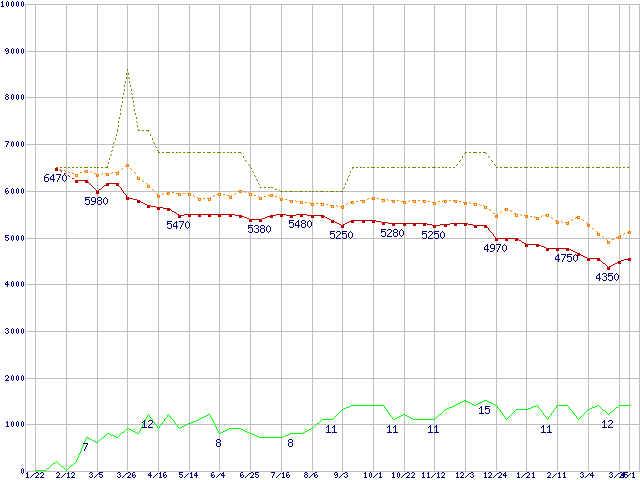 | HTS545032B9A300 (320GB,8MB)の価格推移 |