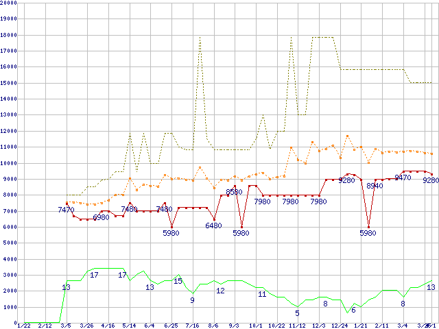 | 2.5インチ ローエンドSSD 32GB (32GB,MLC)の価格推移 |