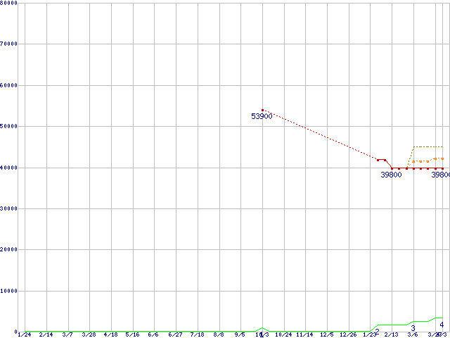PC3-12800 4GB×2枚組みセットの価格推移↑前グラフ↓次グラフ(2009年1月24日〜2010年4月3日)※このグラフは過去のデータも税率5%相当に調整した税込み相当額のグラフです。 税率変更や、総額表示方式導入(2004年4月)の影響は除いています。●関連グラフメモリ主要製品の最安値推移メモリ主要製品(最安値1万円以上)の最安値推移PC3-12800(DDR3-1600) DDR3 SDRAM DIMMの最安値推移●凡例最安値(点線部は販売店未確認または未調査)平均値最高値ショップ数