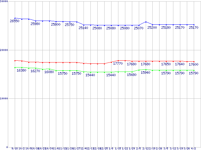 | LGA775 (FSB 1333MHz,Dual Core,TDP 65W)の最安値推移 |