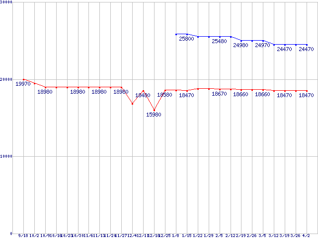 | ※製品名をクリックすると個別のグラフを表示します ※点線部は販売店が確認できなかった、または調査データがないことを示します |