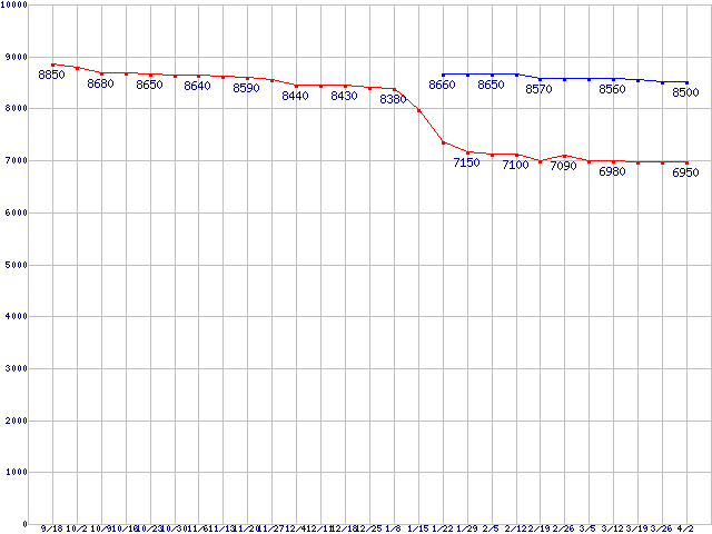 | LGA775 (FSB 1066MHz,Dual Core,TDP 65W)の最安値推移 |