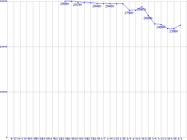 | Barracuda XT (7200rpm,6Gb/s)の最安値推移 |