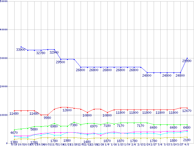 | ※製品名をクリックすると個別のグラフを表示します ※点線部は販売店が確認できなかった、または調査データがないことを示します | |