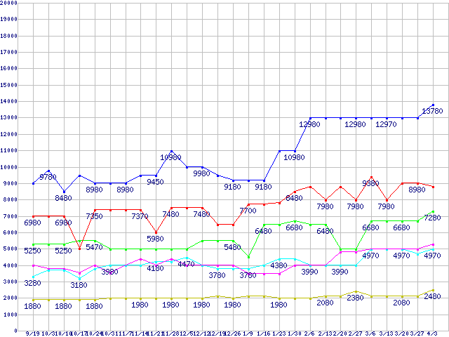 | ※製品名をクリックすると個別のグラフを表示します ※点線部は販売店が確認できなかった、または調査データがないことを示します | |