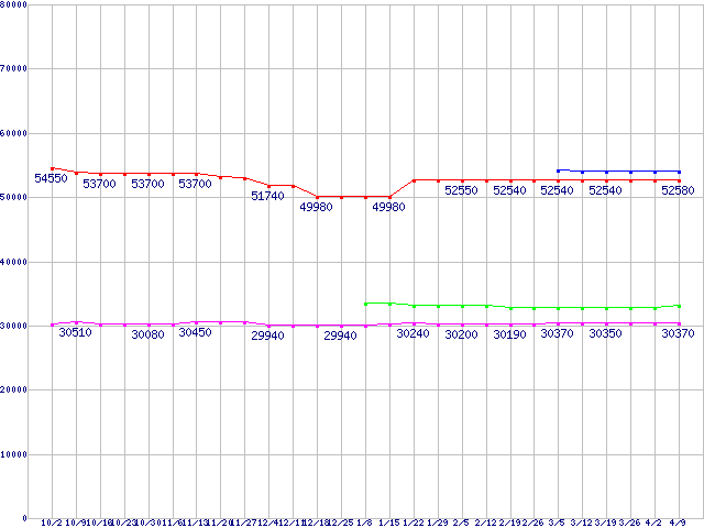 | CPU主要製品(最安値3万円〜6万円未満)の最安値推移 |