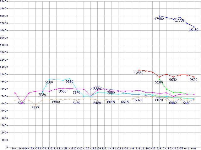 | ※製品名をクリックすると個別のグラフを表示します ※点線部は販売店が確認できなかった、または調査データがないことを示します | |